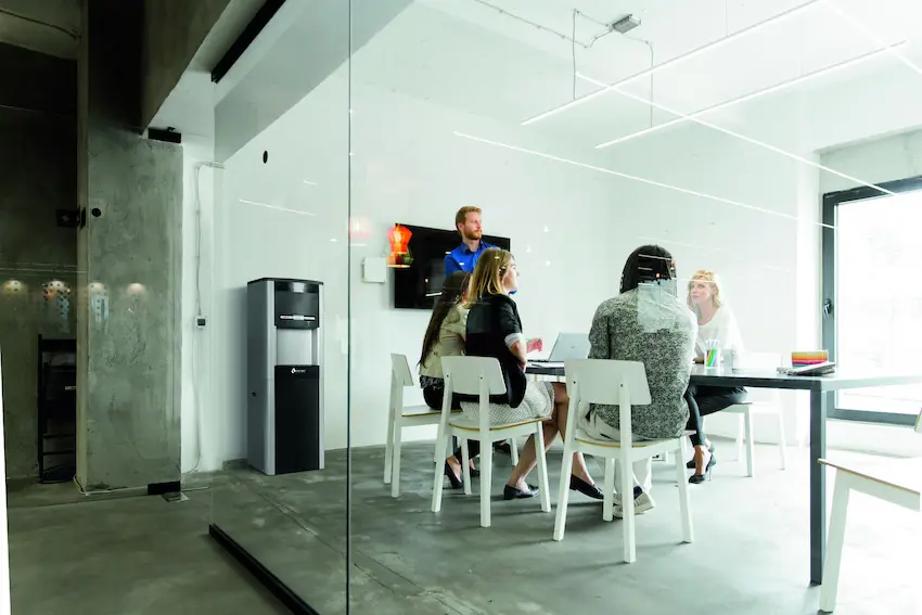 - Uso innecesario de espacio: los botellones requieren bodegas o rincones específicos que podrían aprovecharse para guardar archivos, instalar lockers o mobiliario útil.
